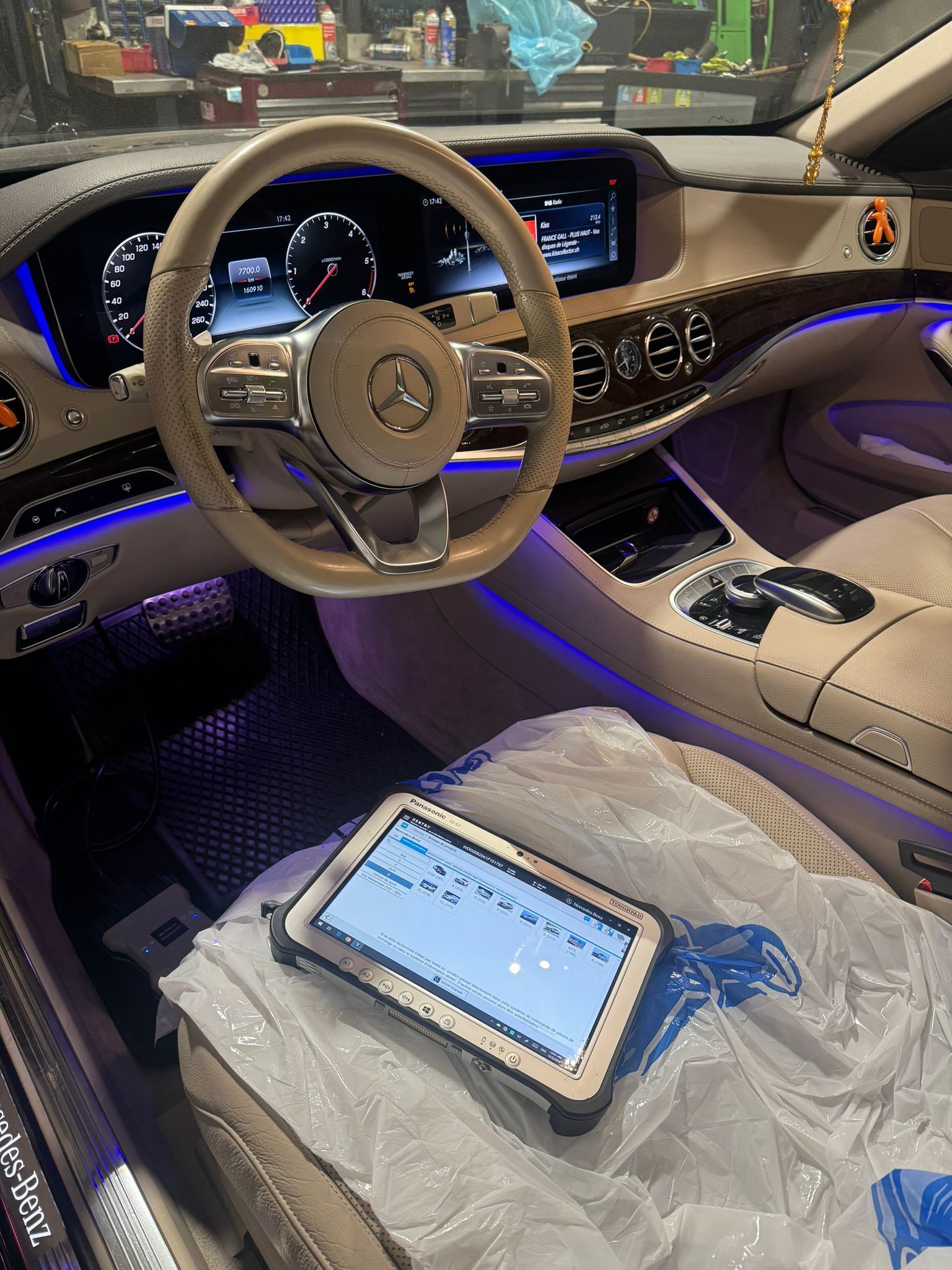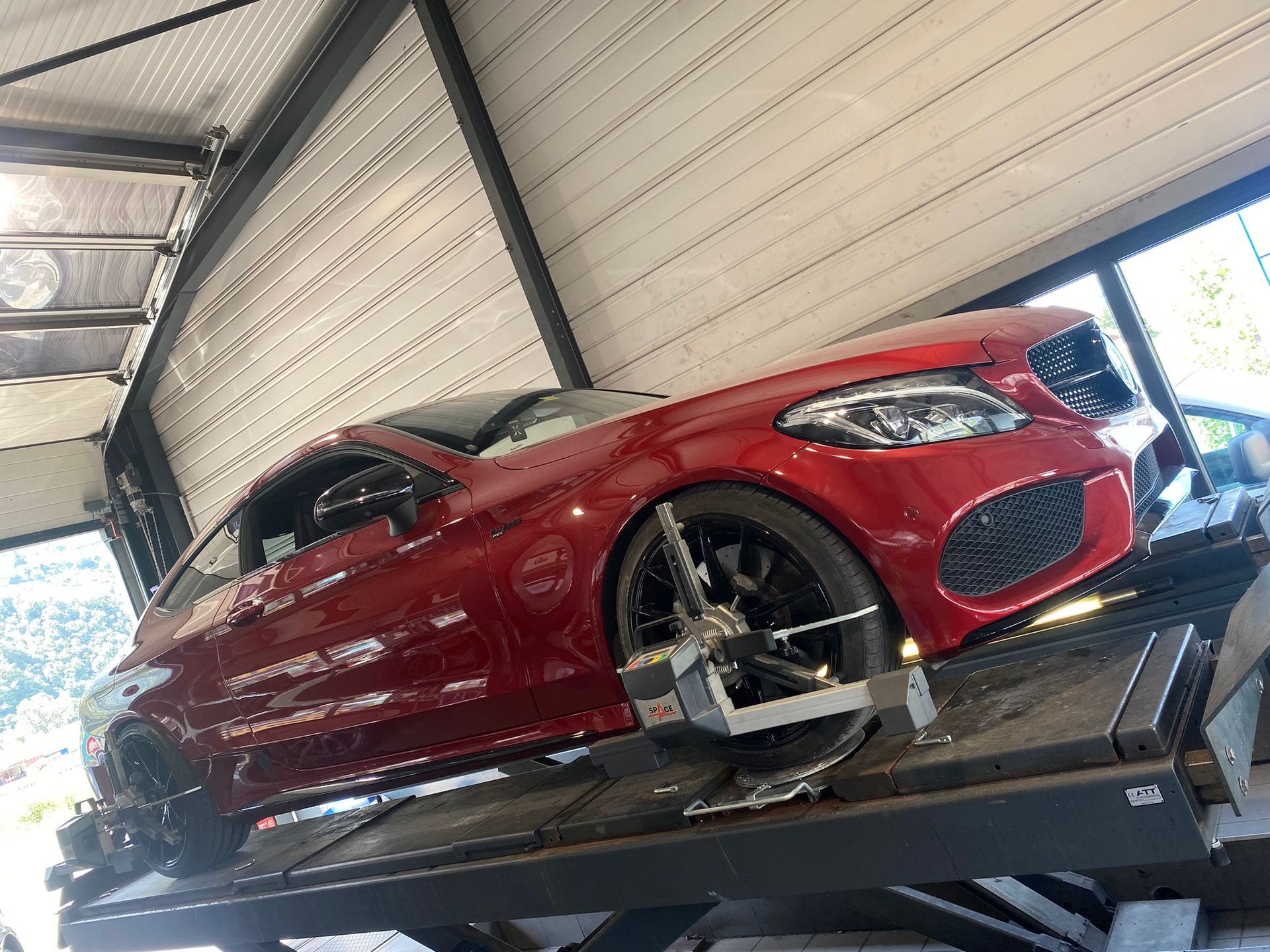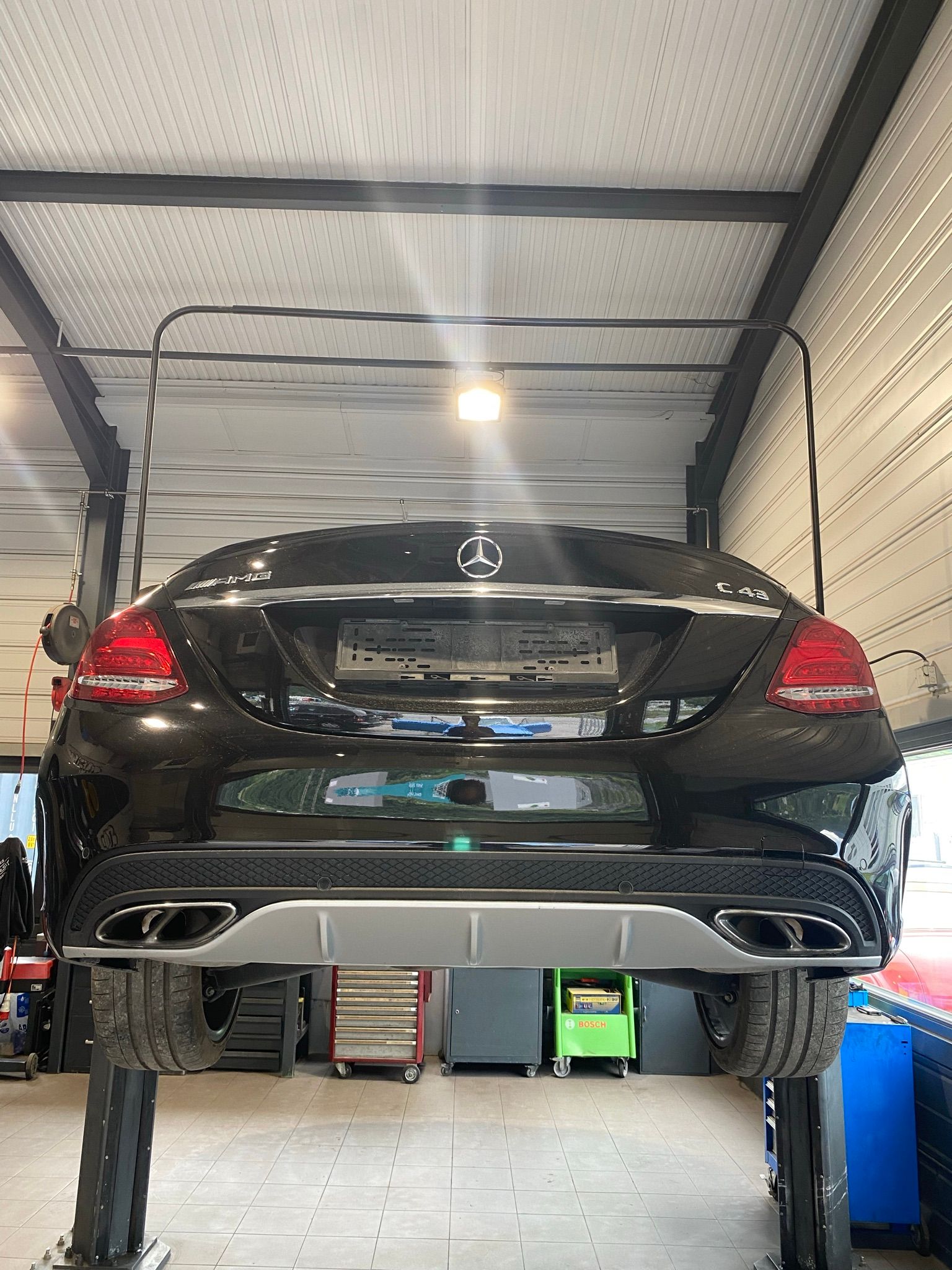 This black Mercedes C class benefits from a performance diagnosis with our cutting-edge equipment. At Garage Universtyle, we provide a thorough check-up to ensure your vehicle is operating to its full potential.